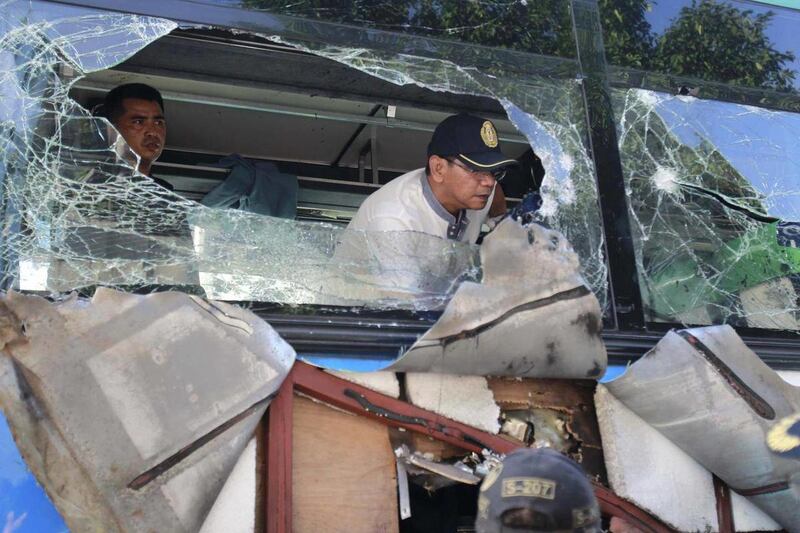 Makati Mayor Junjun Binay, who arrived at the scene minutes after the blast, told reporters he saw flesh and pieces of bone scattered in the bus. Blood spilled down the bus's steps.