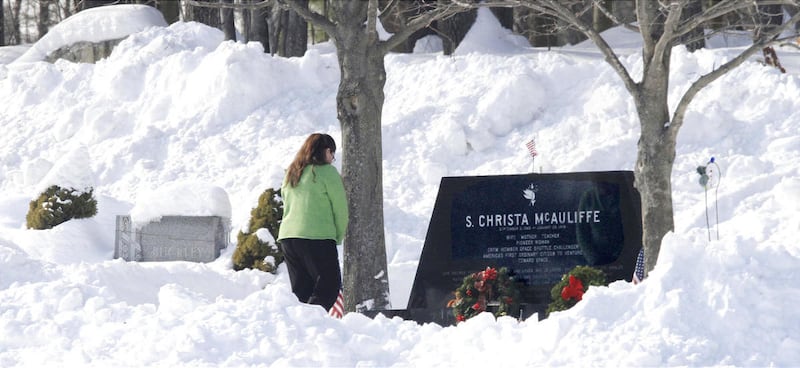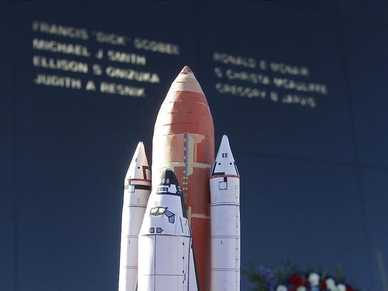 The chilly outdoor ceremony drew space agency managers, former astronauts, past and present launch directors, family and friends of the fallen crew — and schoolchildren who weren't yet born when the space shuttle carrying a high school teacher from Concord, N.H., erupted in the sky.