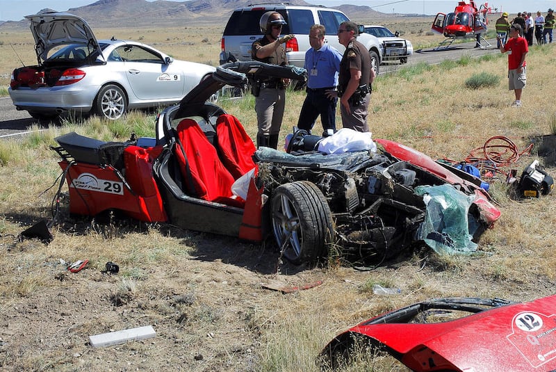 The normally brown field of sagebrush was covered in red car parts. The Ferrari shattered into dozens, if not hundreds, of pieces.