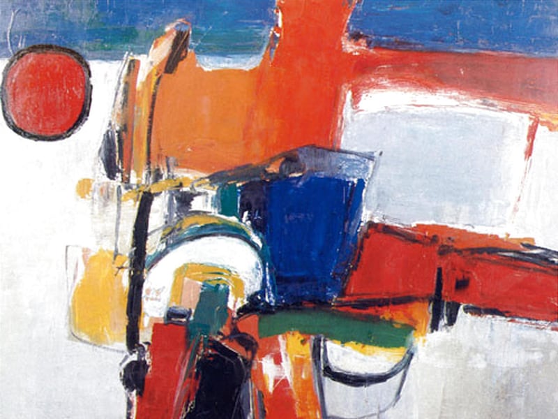 The UMFA exhibition captures all those shifts and changes, Poulton says. The paintings shown were all done in Olsen's post-Hofmann period, but you see more fluid lines in works such as "Garcia Lorca," c. 1960, and "Andalusian Elegy," c. 1965, and harder edges in works such as "Bleaker," c. 1978, and "Summer," c. 1982. (Olsen didn't date any of this works, so dates are approximate.) A familiar motif in almost all of his works is "a round, red sun image," says Poulton. "He once admitted he could not get away from that."