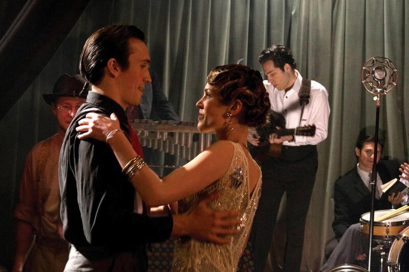 As the band played "Hands of Time," local actress Danielle Kelly was whisked on stage to tango, only to be removed from the club minutes later by the mobsters. Meanwhile, hair and makeup artists who work at the Oregon Shakespeare Festival touched up about 25 actors and dancers backstage, and a camera crew darted through the crowd, with a hand-cranked 35-millimeter video camera.