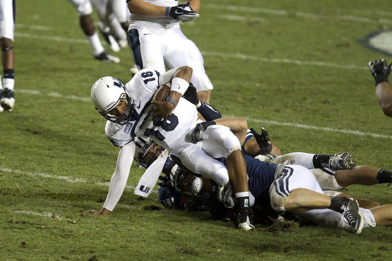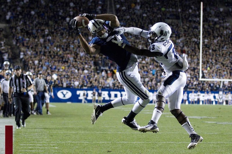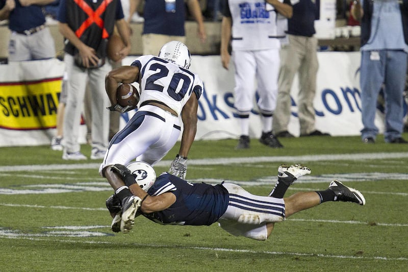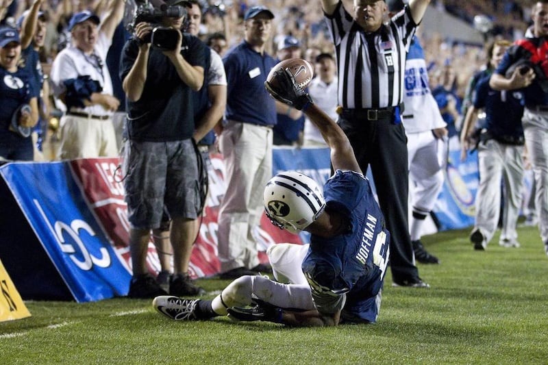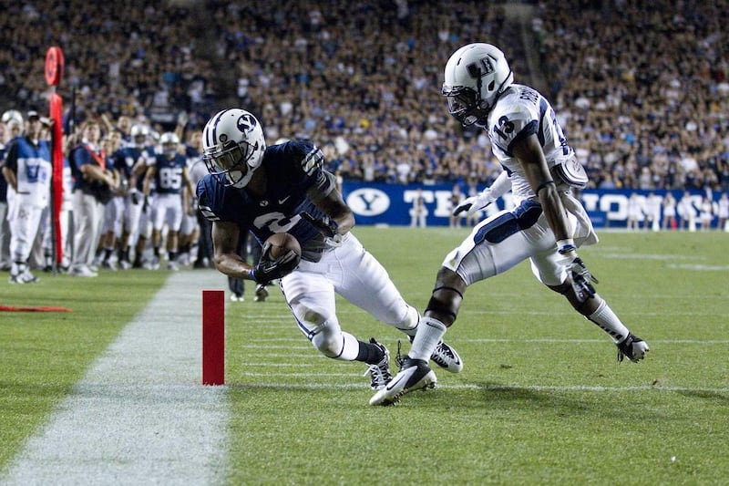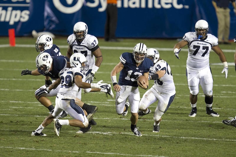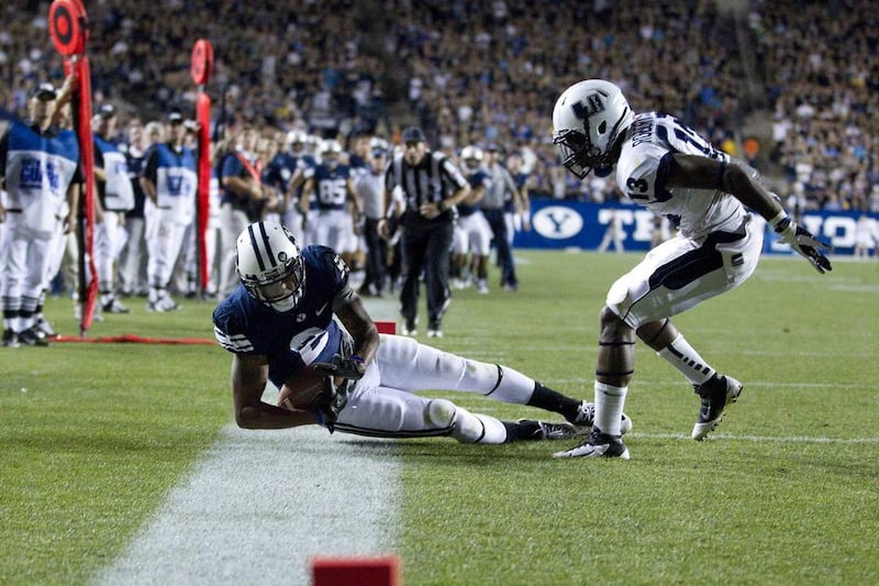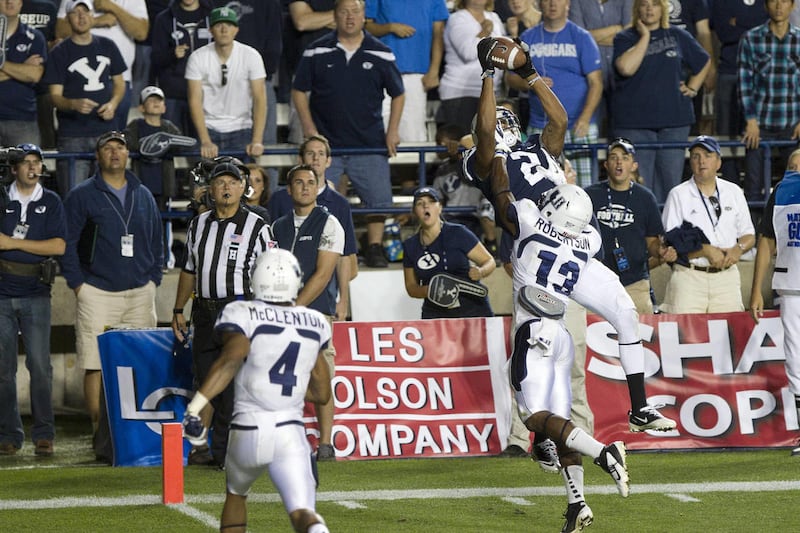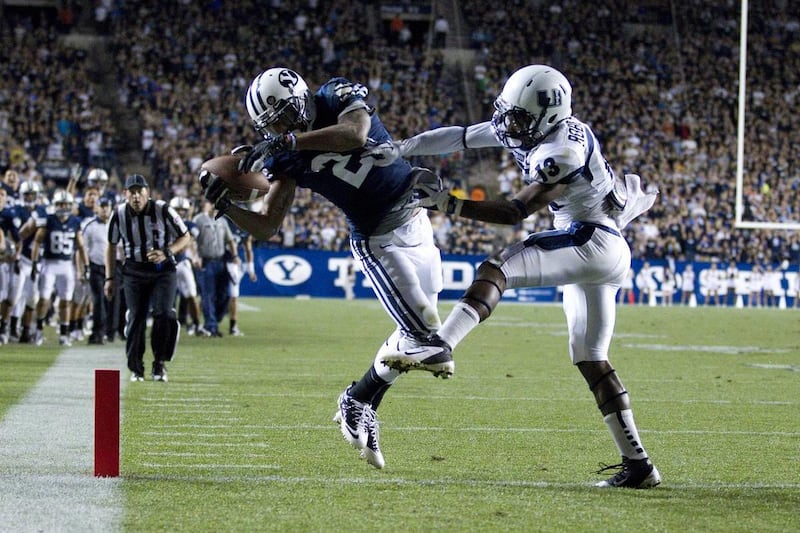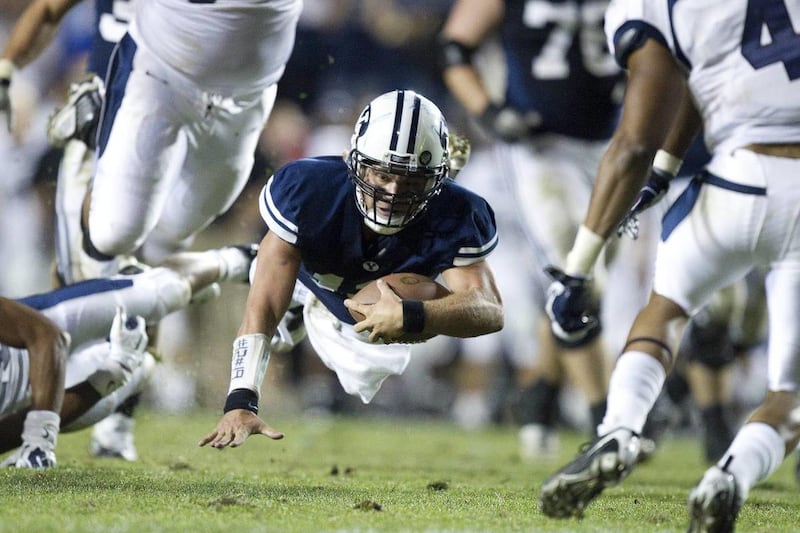 With 2:46 remaining in the game, BYU trailed 24-20 when it took over on its own 4-yard line after a 67-yard USU punt. On first down, Nelson lost two yards, giving the Cougars second-and-12 on their own 2-yard line — 98 yards from the end zone.