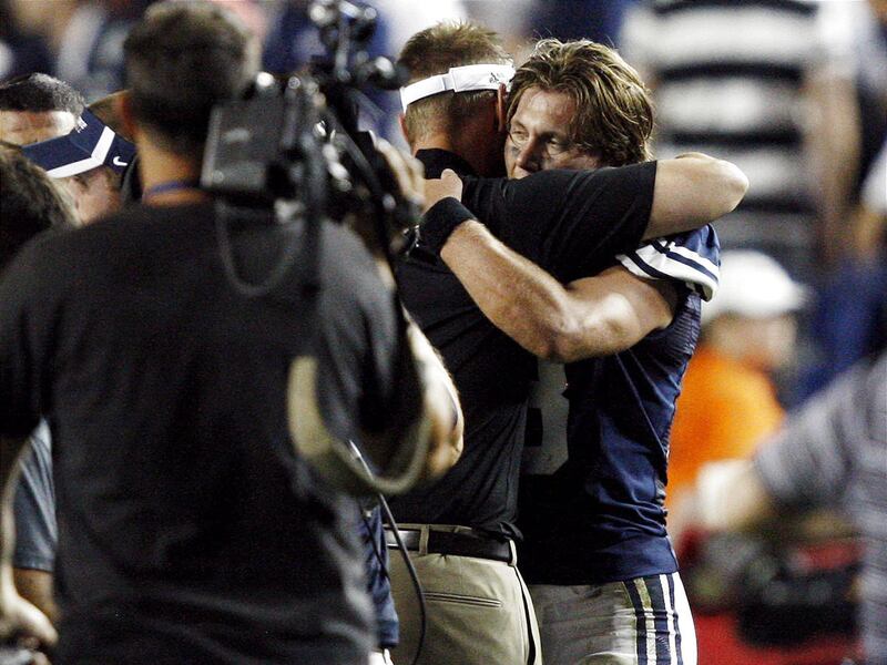 "(Linebacker Brandon) Ogletree came up to me and he said, 'Do you remember the spring game?' I believe in Riley Nelson,'" said coach Bronco Mendenhall. "And he was smiling. It mattered to me that he would believe in his teammate so much that he would come to me and say that."