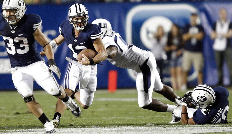 The Utah State transfer, and Logan native, came off the bench to lead an improbable 96-yard drive in the waning minutes and rallied the Cougars from an 11-point fourth-quarter deficit. In the end, BYU earned a dramatic 27-24 win over the Aggies Friday night at LaVell Edwards Stadium.