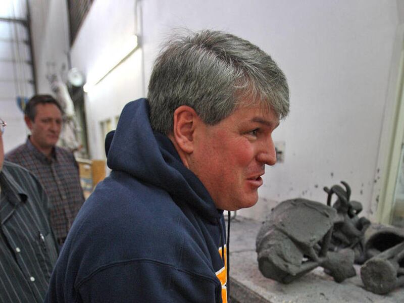 First, a wax of the original is created, dipped in paint five to seven times and coated with sand. Then, 2,150-degree liquid bronze is poured into the mold, the wax is melted out, ceramic is chipped off and the pieces are welded together.