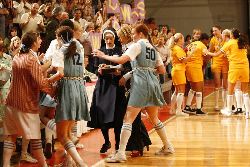 Chambers finds the easy laughs in a tale of life-among-nuns. None of the women cast as players have big enough roles to stand out — the poor girl who wears overalls, the girl plotting her engagement, etc. David Boreanaz has the underdeveloped role of Rush's NBA referee-husband. But Gugino and Shelton click (they have played far less family-friendly characters together in the past) and Burstyn classes up the joint with her Oscar-winning presence.