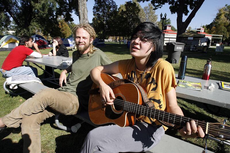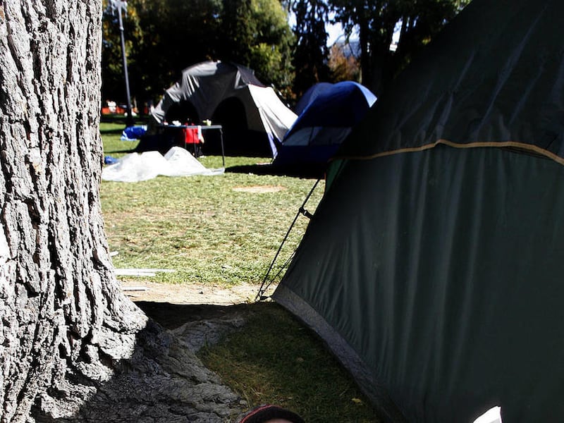 Protestors took over the southwest corner of Pioneer Park two weeks ago in a show of solidarity with the Occupy Wall Street movement that has spawned similar demonstrations around the nation and the world. In Salt Lake, protestors have avoided violent confrontations with law enforcement as they have worked with city officials and with police to comply with a number of requirements, including that the group move its camp each Friday night to allow vendors to set up for the Farmer's Market on Saturdays.