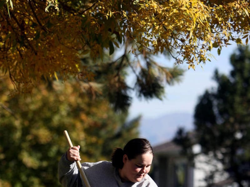 After losing her husband two years ago, Laufou has found it challenging to keep things up around her home. After already winterizing her swamp cooler, the group picked up rakes and began cleaning up her front yard.