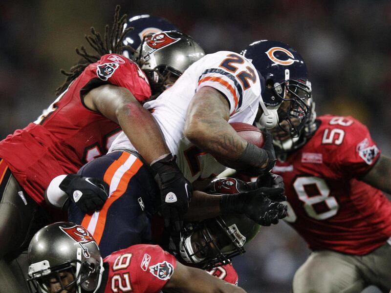 WEMBLEY, England — Matt Forte ran for 145 yards and a touchdown and the Chicago Bears held on to beat the Tampa Bay Buccaneers 24-18 on Sunday in the fifth annual NFL regular-season game at Wembley Stadium.