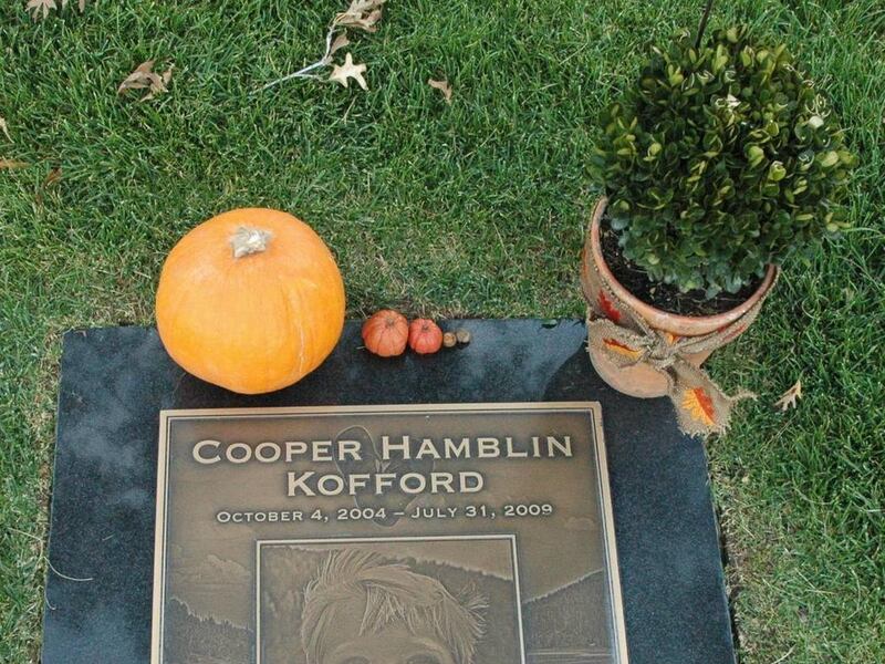 I went back a couple of days later with Cooper's name on my list of photo requests, because the Internet is a place to keep memories alive, too. I met a brother and sister who are also Find A Grave contributors. They were busy walking the rows, looking for graves of which photos had been requested. They hadn't seen Cooper's grave yet. I told them they were in for a special moment. I imagine them lingering, as I had, amid the Halloween decorations, at the beautiful resting place of a beloved little boy.