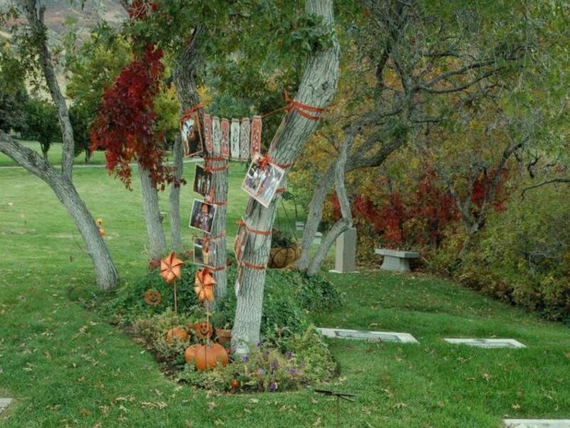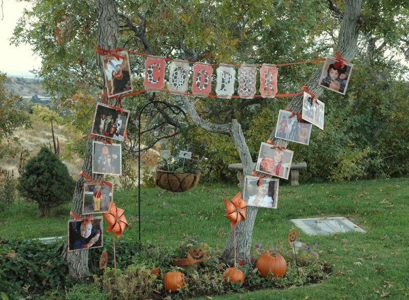The pictures were of all of the same family, dressed for several Halloweens. The little boy in the pictures was Cooper; his name was spelled out on the sign. I had not yet seen his grave.