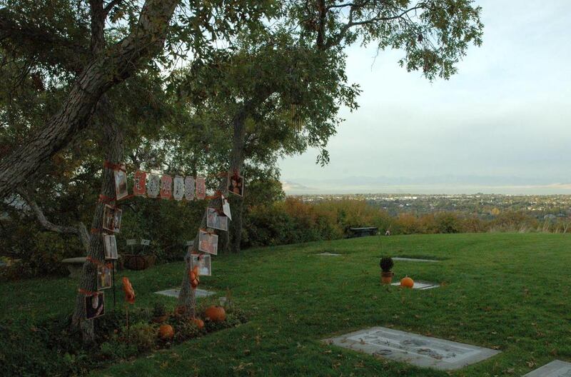 The cemetery is nestled in the foothills above Provo, near the mouth of Provo Canyon. Mountains soar behind it. Paths wind among the trees, hills, flower gardens and graves. Utah Lake dominates the vista to the west, with more mountains beyond it.