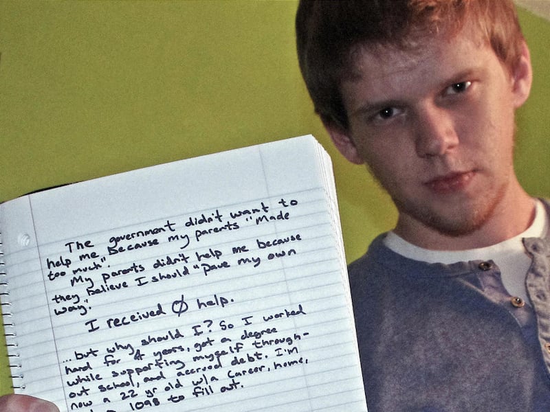 A 23-year-old woman wrote about how she has student debt and doesn't have a decent job yet, "I'm exhausted, I'm fed up but I will keep going. I will one day work a job involving my passions and talents, but, in the meantime, I can't waste precious time in a field, in tents and on my butt."
