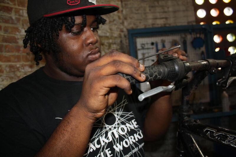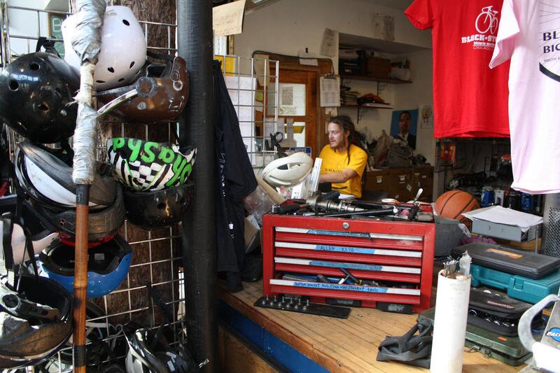 Blackstone is a working bike shop, probably best described as a youth-focused nonprofit organization that sustains itself with bike sales and repairs. There are at least 20 kids there on any given day, doing homework, playing games or putting time in at the shop. When they've worked on bikes for 20 hours, they get to choose one to rebuild that they can keep. When they get to 25 hours, they can take that bike home. They can repeat this process, and earn as many bikes as they like, Swanton says.