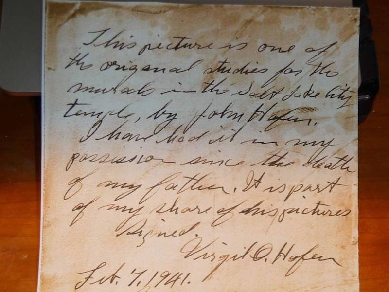 Christensen explained that this artwork is rare because there are few studies by John Hafen that are not owned by the LDS Church or museums. This piece is also available for viewing to the public, unlike the murals inside LDS temples.