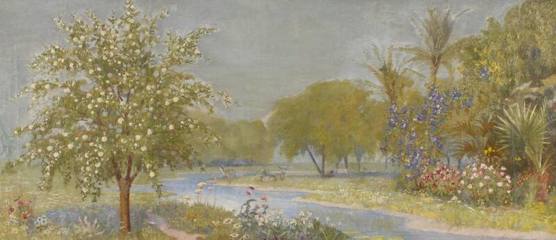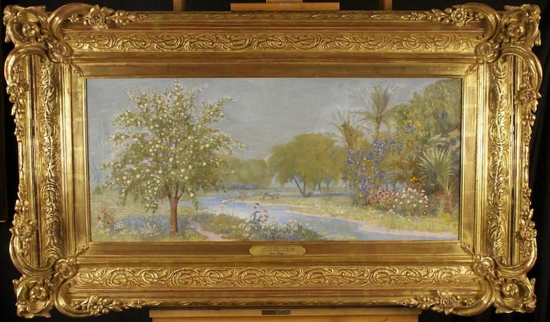 "Hafen was under the direction of President Wilford Woodruff, " Anthony Christensen, owner of Anthony's Antiques and Fine Arts gallery, explained. "Hafen and others were hired to do murals in the Salt Lake Temple, and this is Hafen's small practice piece for his assignment of the garden room."