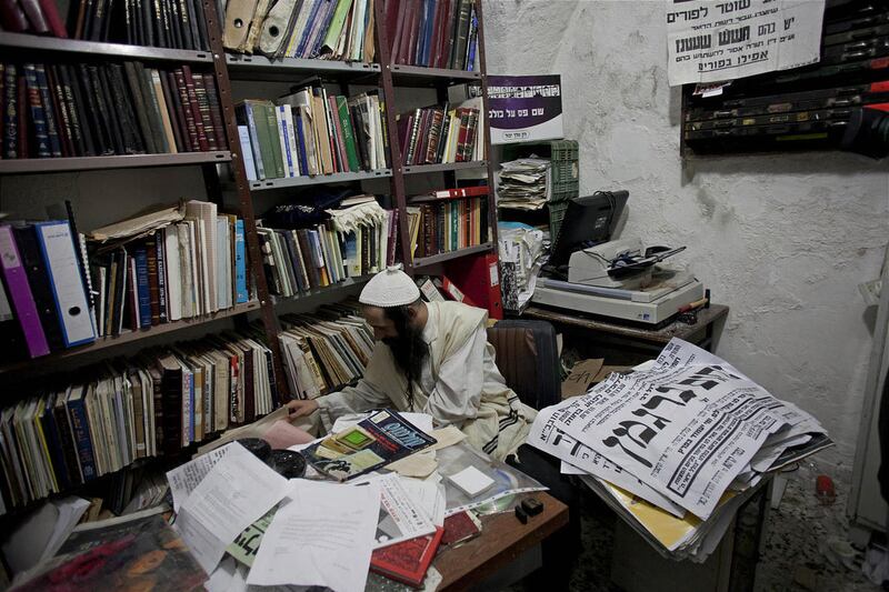 Yoelish Kraus, a 38-year-old ultra-Orthodox resident of Jerusalem, began peeling the posters off the sooty stone walls of his neighborhood when he was a teenager. Today they fill a windowless, crumbling two-room library. Some are filed by subject. Others lie in piles under a layer of dust and scattered black fedoras.