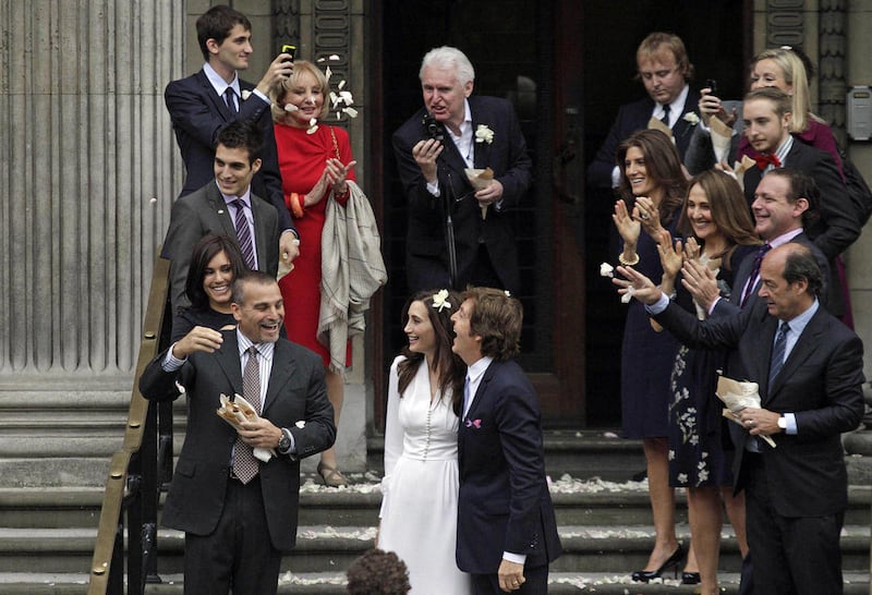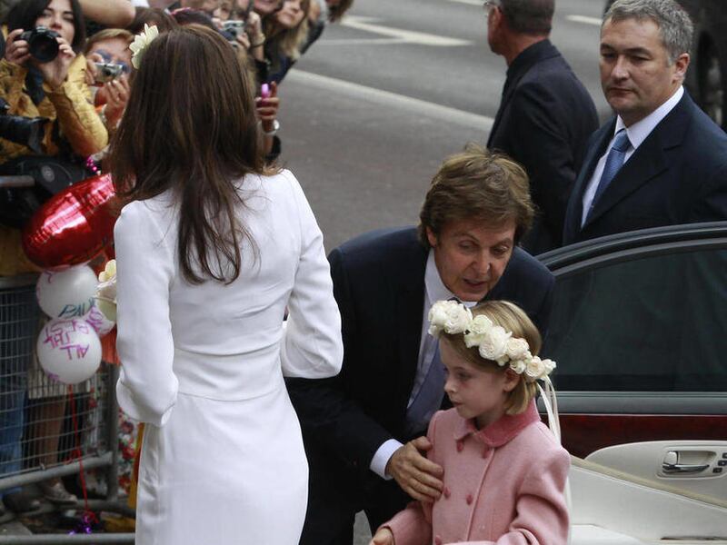 The dress was designed by McCartney's daughter, Stella, a star in the fashion world who also helped concoct the three-course vegetarian feast served to guests at the reception at McCartney's home in St. John's Wood, a property he bought in 1965, when the Beatles were topping the charts with metronomic regularity.