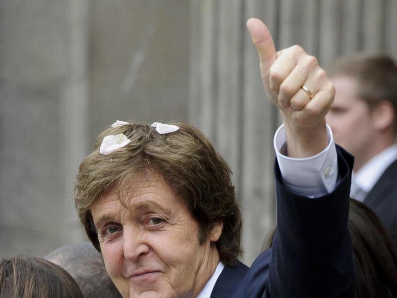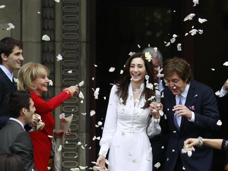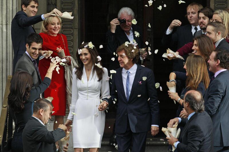 LONDON — A hint of autumnal Beatlemania was in the air Sunday as Paul McCartney, for the second time in his improbable life, climbed the steps of venerable Old Marylebone Town Hall to take himself a bride.