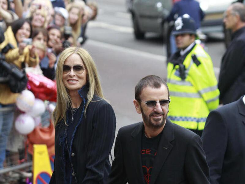 Starr's first marriage also ended in divorce, but he has had a long, stable union with his second wife, the actress Barbara Bach, who joined him at Sunday's ceremony.