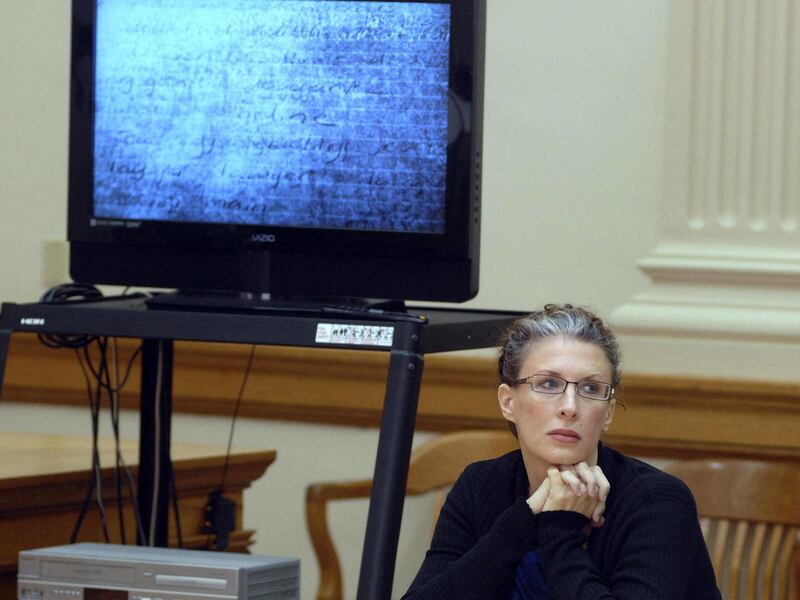 FORT DODGE, Iowa — A detective who wrote the book on how blood patterns can solve homicides is testifying at the murder trial of a woman charged with killing her neighbor in 2001.