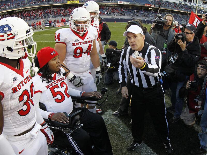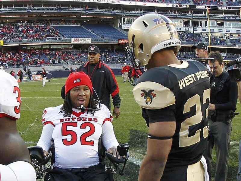 NEW YORK — Paralyzed Rutgers player Eric LeGrand took part in the coin toss before the Scarlet Knights' game against Army on Saturday, and even making the wrong call on the flip could not take away from the moment.