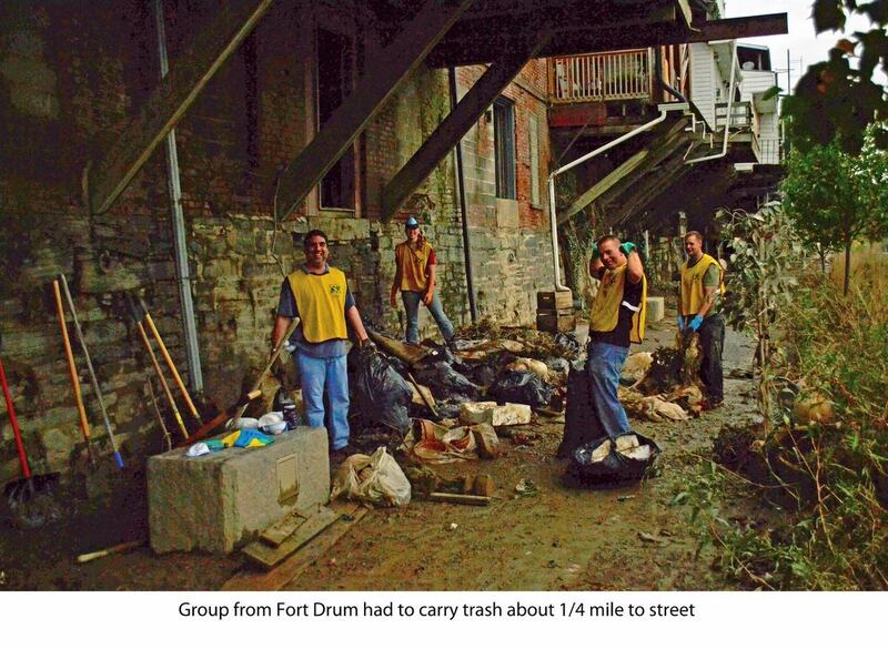 Included in the cleaning were the Tioga County Museum and Historical Society Building in Owego and a large farm at Nichols. The volunteers, ranging in age from teens to seniors in their 60s and 70s, worked from early morning until late afternoon. They removed mud from homes, garages and barns. They hauled buckets of mud up narrow stairways in darkened basements and worked together to carry mud to the street with smiles on their faces.