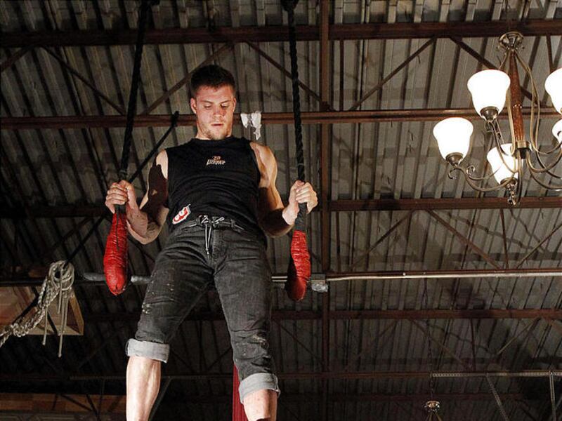 MIDVALE — A horizontal bar, 25 to 30 feet in the air, hangs by chains from the ceiling.