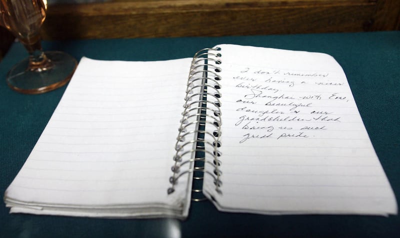Framed pictures of Sherry Black were hung on the wall and on bookshelves. A small notebook that Black wrote in is now kept in a glass case next to the front counter. The book is opened to a page with Black's handwriting from September of 2009. In the small note, Black talks about a birthday trip she took with her family to Shanghai.