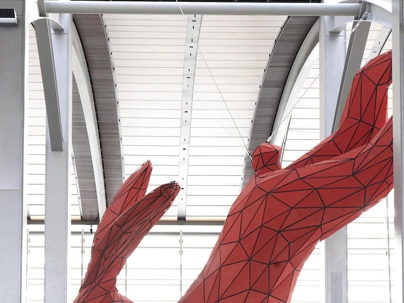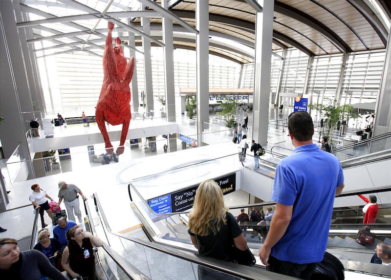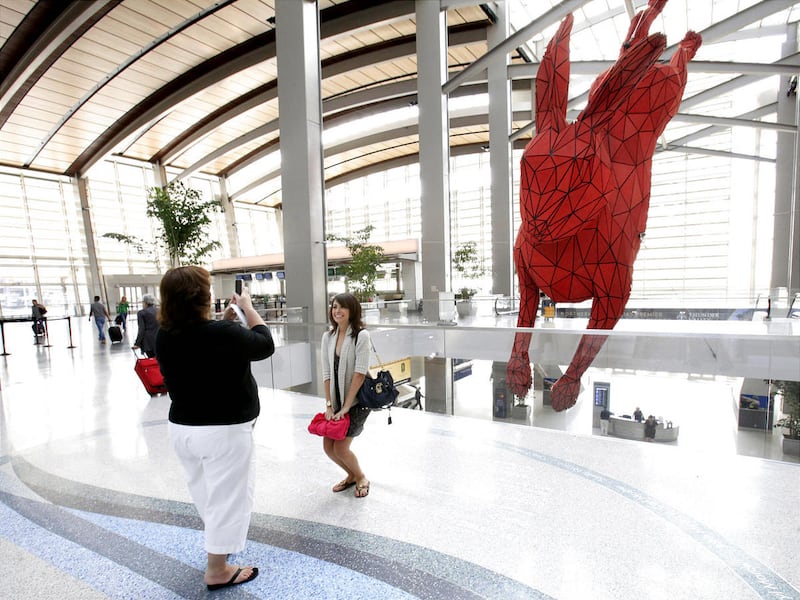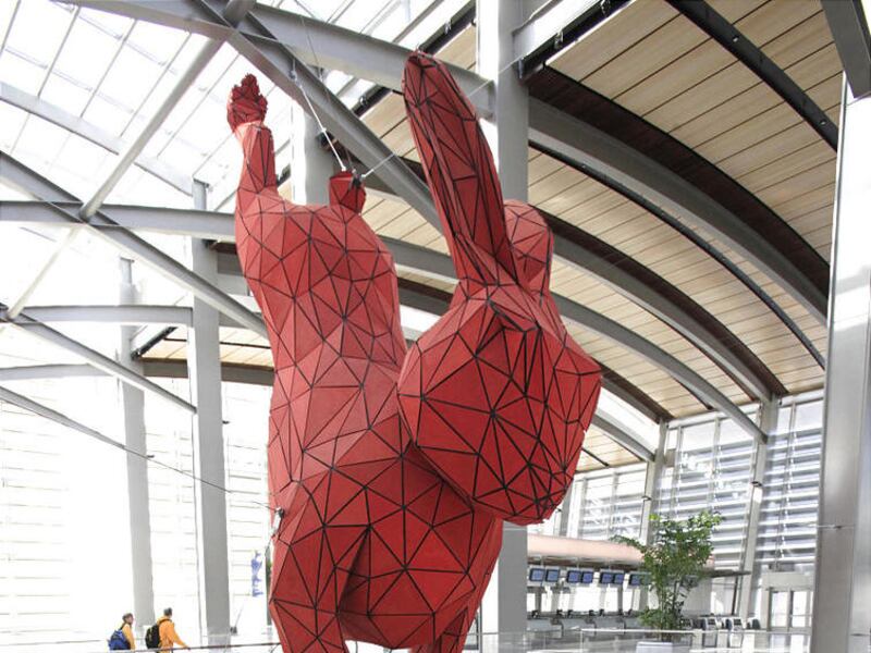The 56-foot-long, 10,000-pound aluminum rabbit conceived by Denver artist Lawrence Argent is the centerpiece of the $1 billion terminal, which opened a month ago. Even though it only opened Oct. 6, its distinctive resident has already inspired a nickname: The Hare-port.