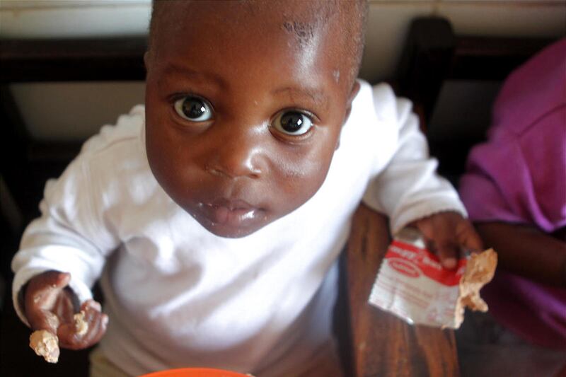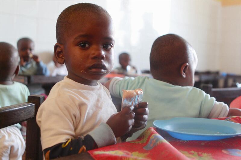 MOZAMBIQUE, Africa — The baby gives the silver pouch a squeeze and a thick, brown goo gushes out over his chubby fingers. His eyes are wide as he mashes the food between his gums, but as soon as he swallows, he gives a "gah" of glee and kicks his legs against his wooden high chair. Next to him, another of the 60 or so African orphans he shares a cinder block home with, licks her fingers.