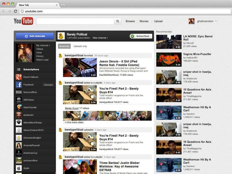 The left of the page is devoted to a column that can be customized to feature a viewer's favorite channels and monitor the videos being posted by their friends on social networks, including Facebook — a rival to Google's own Plus service.