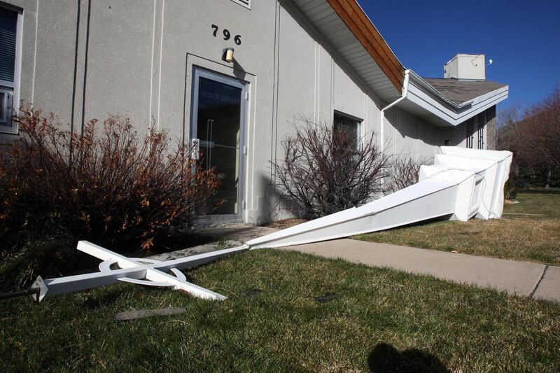 In Fruit Heights, the steeple on the Westminster Presbyterian Church was blown off the roof.