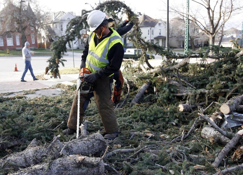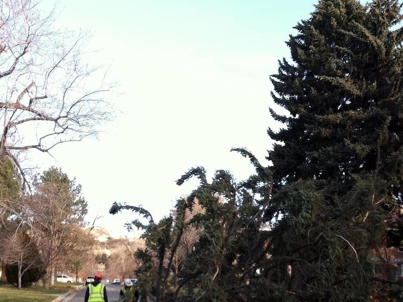 Down the street, the wind uprooted the 80-foot Christmas tree at City Hall.