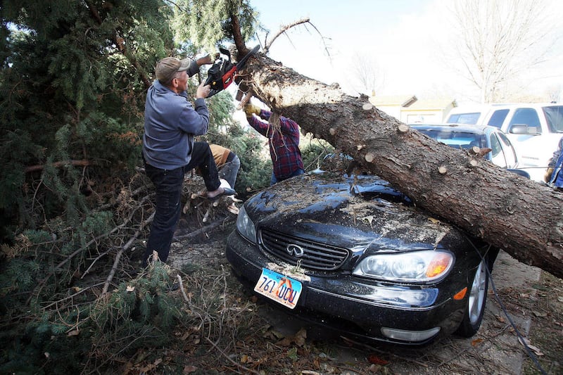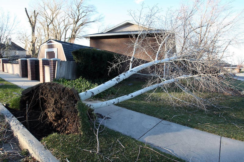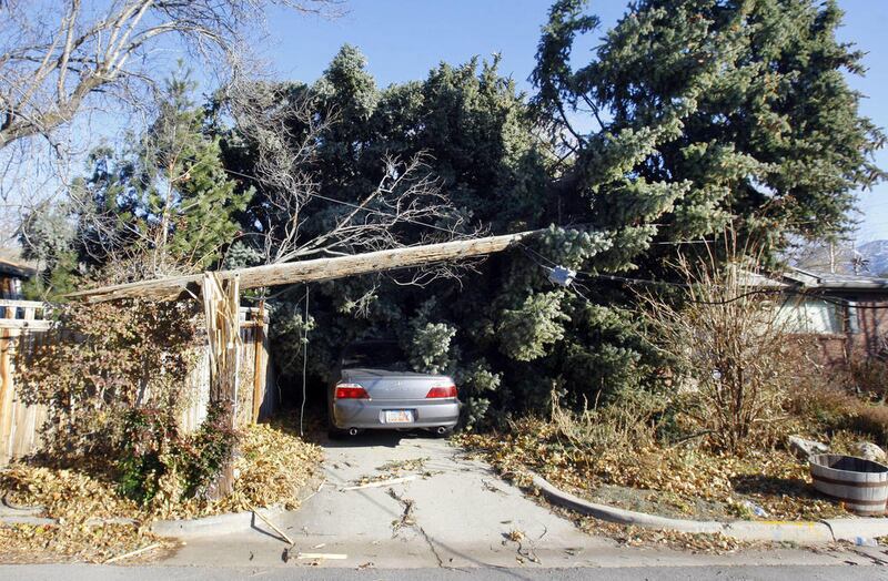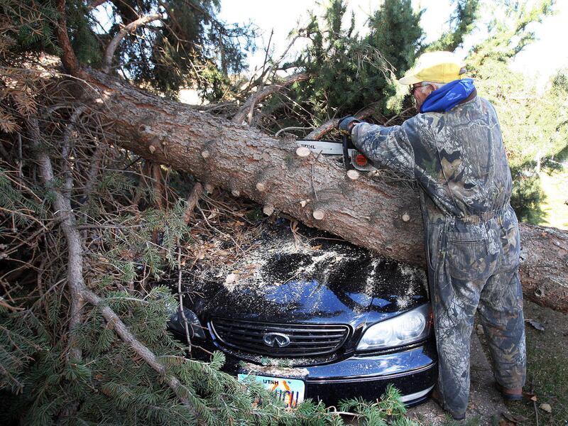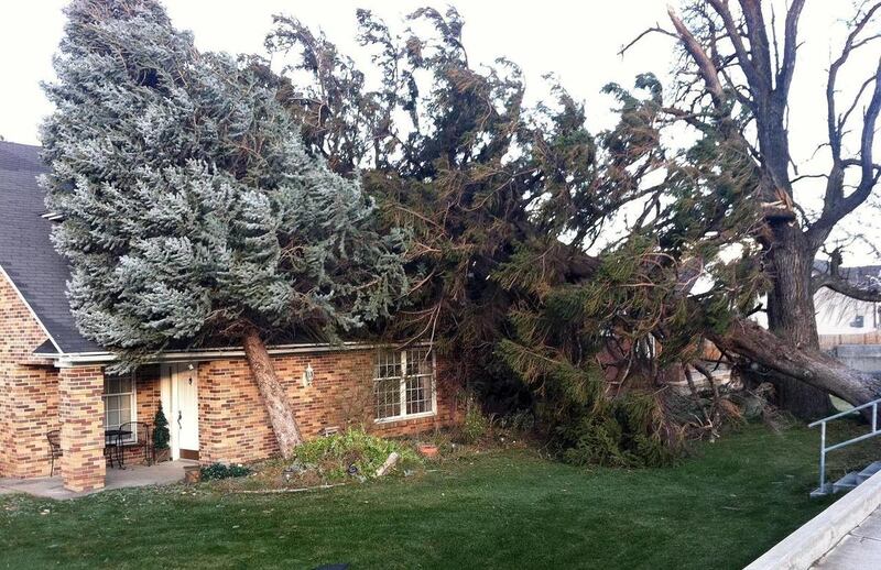 In Kaysville, wind decimated what is known locally as "Evergreen Strip," where more than a dozen Colorado blue spruce trees were blown over.