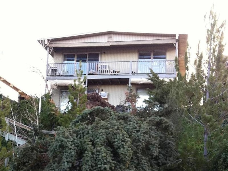 Stott said he built the home 50 years ago and planted both trees when they were tiny saplings. As he spoke, the wind whipped at a rose covered trellis, and he grimly predicted it would be the next to go.