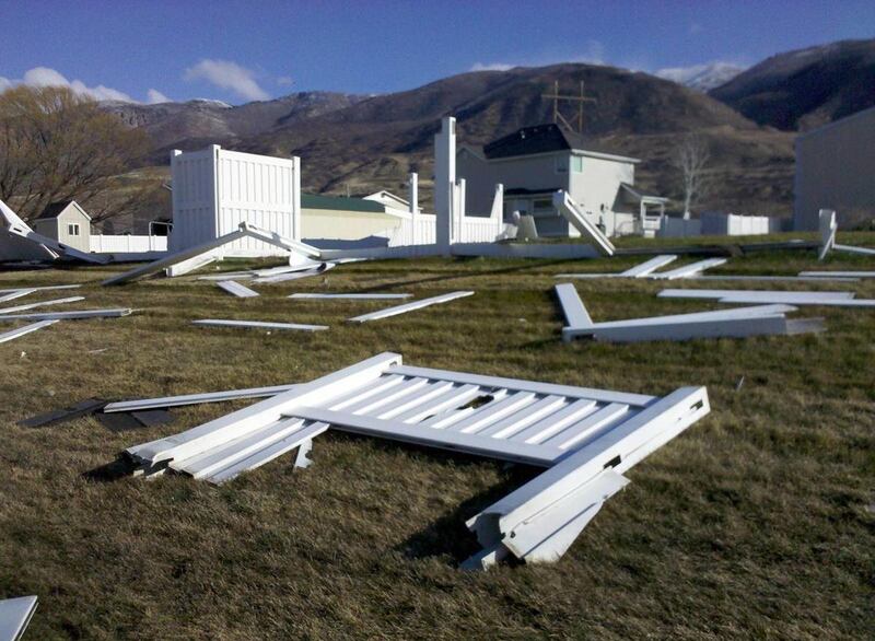 In Layton, high winds created widespread damage. The fencing at Burch's Trees on Main Street was toppled. The Christmas tree lot is a holiday tradition in the city. The wind knocked the canopy into a trailer in the lot.