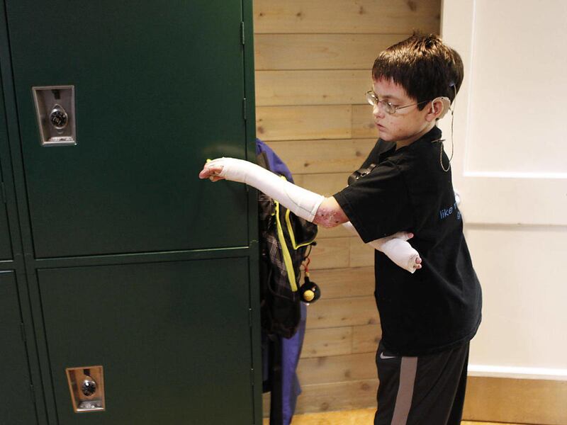 Shane, a 13-year-old Seven Hills student, has a rare skin disease called Epidermolysis Bullosa (EB), which makes his skin blister and tear easily. The Montgomery teen spends each day with 40 percent of his body wrapped in bandages.
