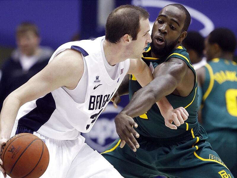 Then after a missed free throw by Baylor, Charles Abouo dribbled the ball up court and handed it to Brandon Davies, whose 3-point attempt was blocked at the buzzer by Pierre Jackson.