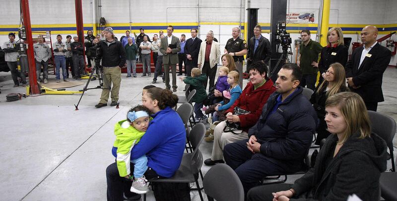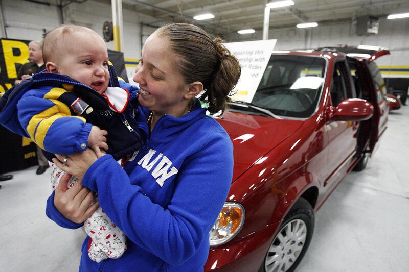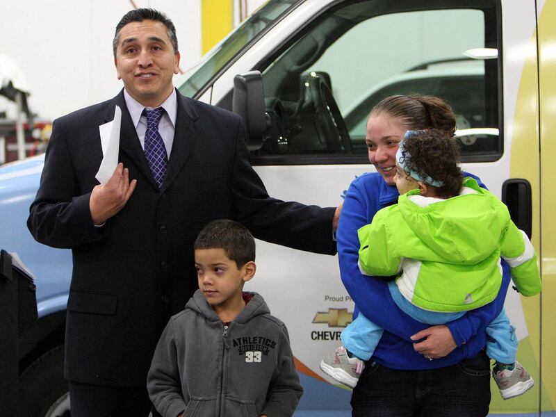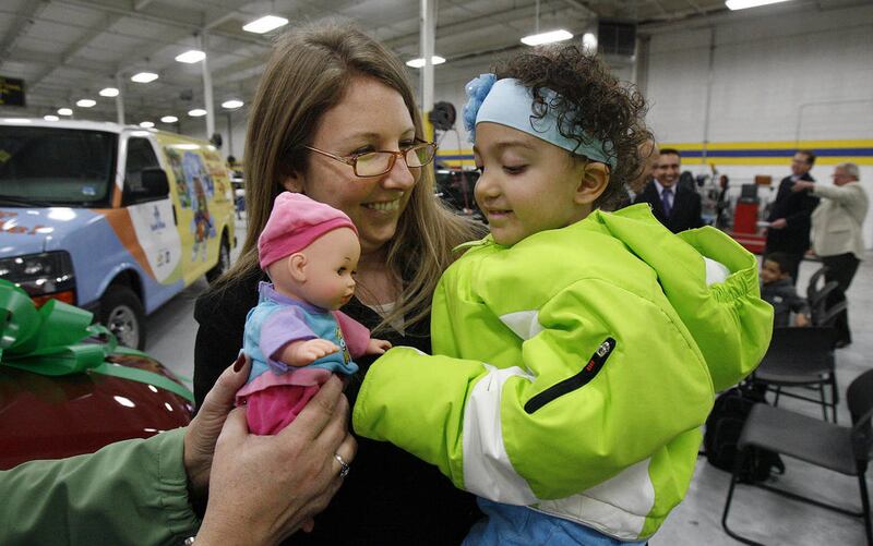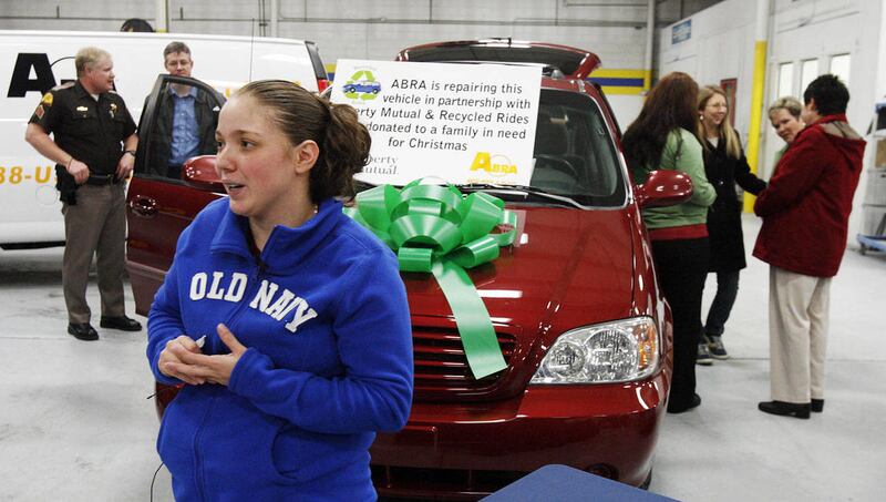 Safe Kids Utah, ABRA Auto Body & Glass, and Primary Children's Medical Center gave a reconditioned minivan to Inelise Rivera and her family as part of the National Auto Body Council's Recycle Rides program on Monday, Dec. 19, 2011, in Sandy. Two children in the family have spina bifida.