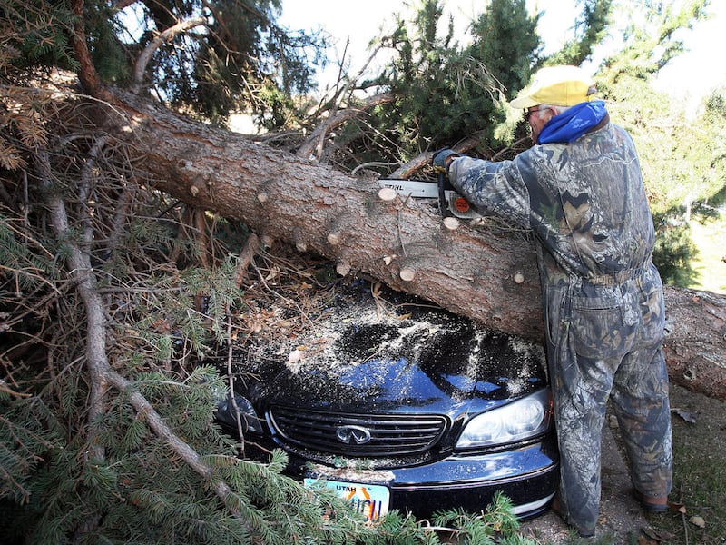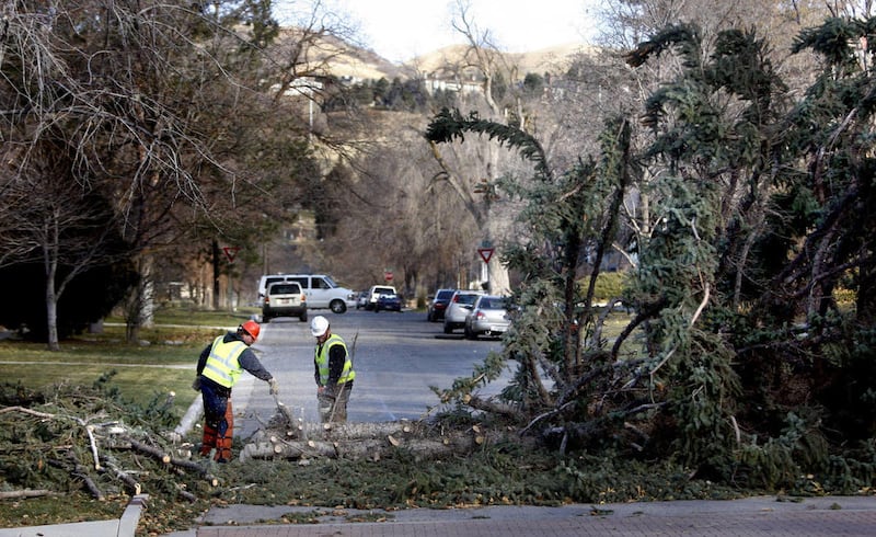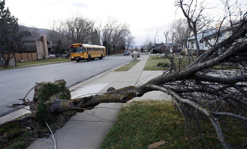 The storm also inflicted damage to people caught in its midst or the aftermath. Three Weber State University students in Ogden were injured Thursday by the blowing wind itself as it slammed them into the ground or into doors, and a Bryant Middle School student was critically injured by a falling limb while walking his dog before school in Salt Lake City.