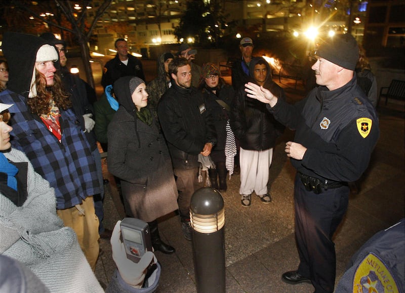In Salt Lake City, however, the recent scene was much different. Police had warned the Occupy Salt Lake group they would no longer be allowed to camp in Pioneer Park and their tents had to go. When the deadline came, a large showing of officers arrived at Pioneer Park, but not in riot gear.