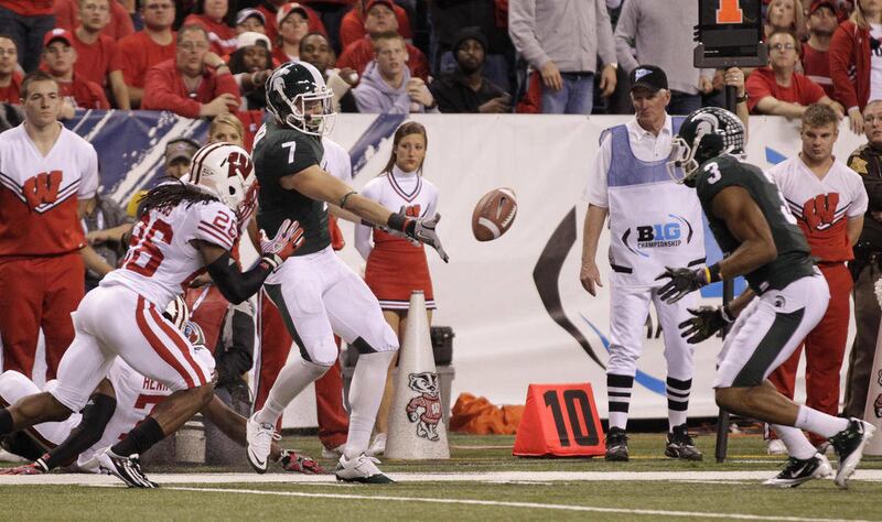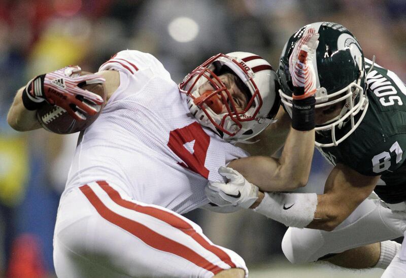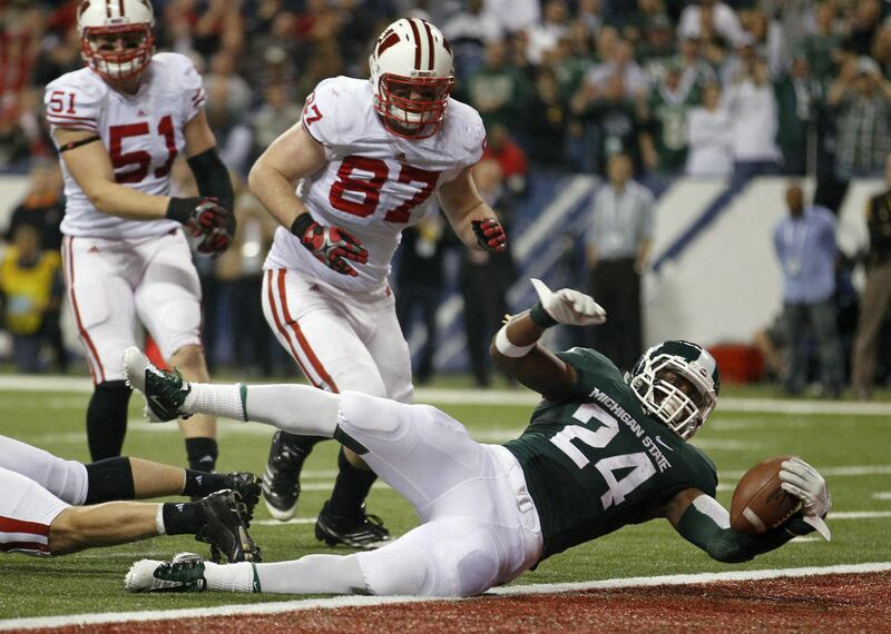 INDIANAPOLIS — Montee Ball ran for three touchdowns including the decisive 7-yard score with 3:45 to go, leading No. 15 Wisconsin past No. 11 Michigan State 42-39 in the inaugural Big Ten championship game.