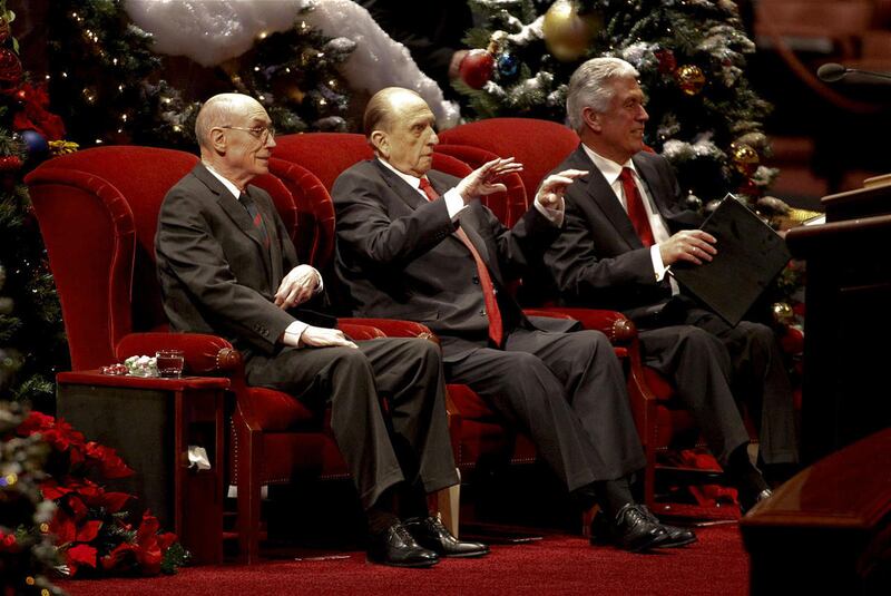 President Monson offered the message of hope to more than 20,000 gathered in the Conference Center, which was adorned with Christmas lights, trees and poinsettias. His counselors in the First Presidency, President Henry B. Eyring, first counselor, and President Dieter F. Uchtdorf, second counselor, also offered holiday messages centered on the Savior.