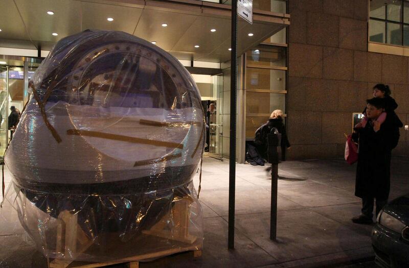 The capsule, scorched during its re-entry into the Earth's atmosphere, was to go on exhibit at the Sotheby's auction house galleries on Thursday. It's estimated to sell for between $2 million and $10 million.