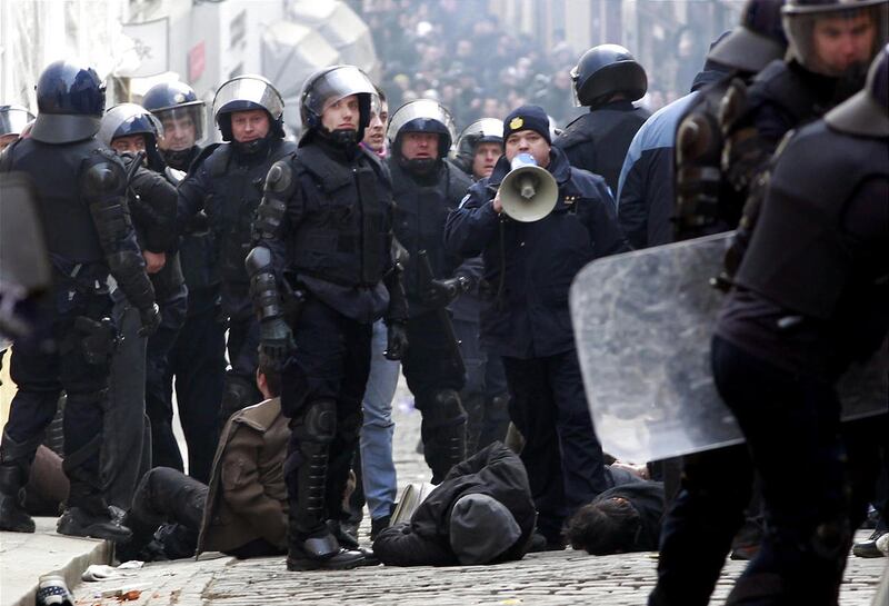 Croatian police said they detained 60 protesters and that 12 police and 13 citizens were injured.