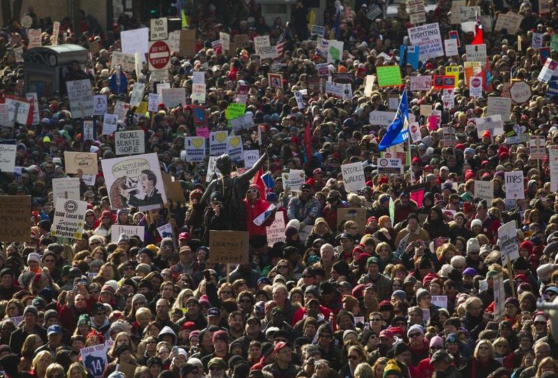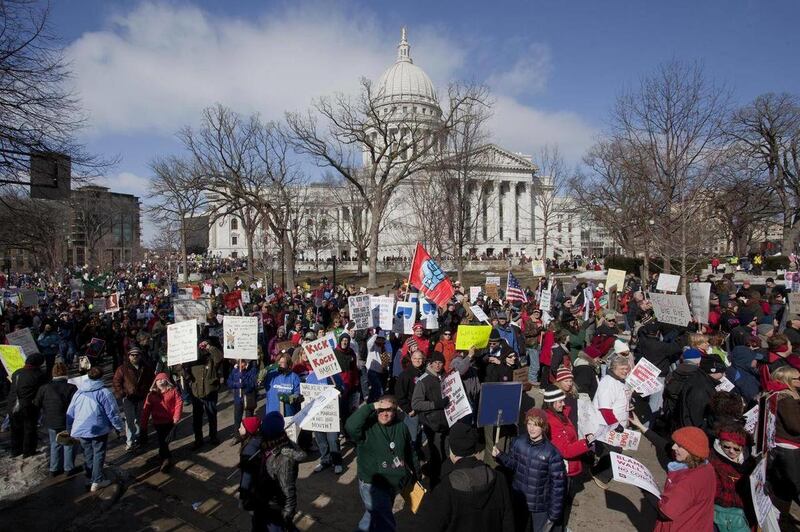 Protests have rocked the Capitol almost every day since Walker unveiled his proposal. But Madison Police estimate Saturday's crowd as the largest at 85,000 to 100,000 by late afternoon.