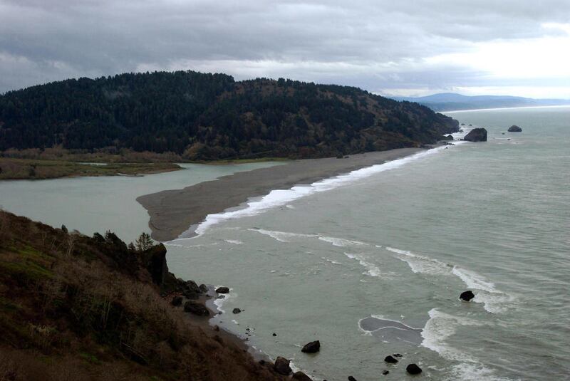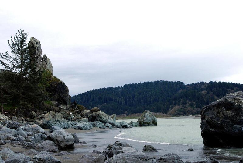 They were on the north side of the river, on a little spit of sand where the Yurok people for thousands of years have used carved wooden hooks to snatch lamprey, a jawless fish that looks like an eel, from the water. A rock formation that looks like a woman with a basket on her back overlooks the site.