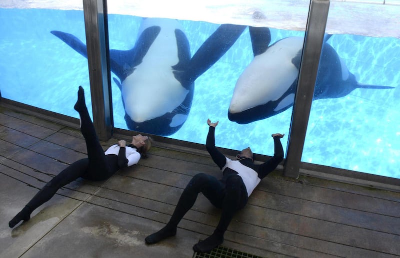 For now, the orcas have to get used to having humans in the water again, Tompkins said. For instance, the animals are being retrained to swim the perimeter of the pools and ignore increasingly loud distractions created by trainers.