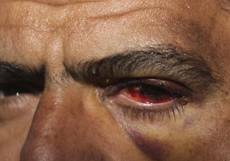 "I feel I should go because my eye hurts and I can not see well, but I am really scared," said Abbas, his left eye red and swollen.